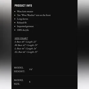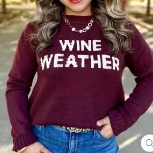 Stay cozy and stylish with the Wine Weather Burgundy Sweater. Perfect for chilly days, this sweater offers comfort and a chic look. Size medium