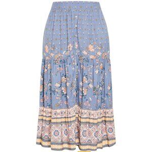City Chic Willow Maxi Skirt Women's 18 Blue Angel Floral Pastel Boho Pull On NWT
