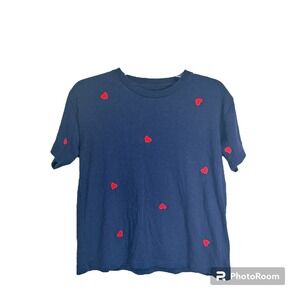 J. Crew Heart Embroidered T-Shirt Women’s S Blue Red Short Sleeve Tee Crew Neck. In good pre-owned condition.
