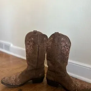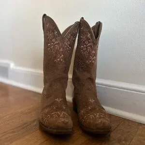 Chic brown boots with elegant embroidery. Perfect for a stylish western look. Super COMFORTABLE!!!