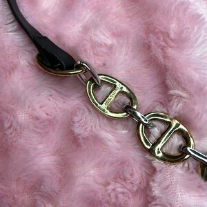 Worn only a few times. Very sleek & sophisticated looking! Features four gold chain links & 3 silver links adorned with beautiful pave diamond rhinestones. This can also be worn as a fun choker necklace as well!