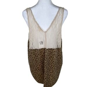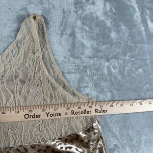 Mystree Velvet Tank Top Women Extra Large Beige Animal Print Lace Trim Y2K