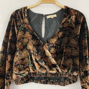 Chelsea & Violet Dark Floral Boho Velvet Blouse Crop Top Women M Brown Romantic