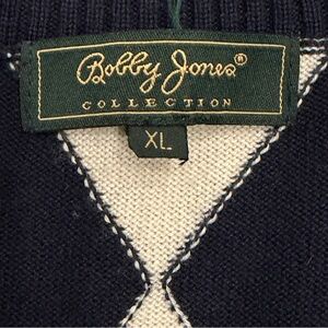 Bobby Jones Blue Argyle Diamond Sweater Vest Men XL Cotton Cashmere Golf Holiday