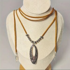 Really stylish free people inspired leather cord necklace. Adjustable length. Can wear multiple ways. 68 inch total chain length