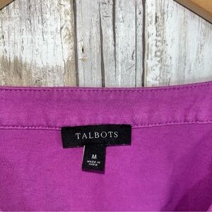 Talbots Purple Embroidered Floral Split Neck Tee