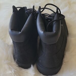 Sleek dark leather boots with sturdy laces. Ideal for versatile wear. New
