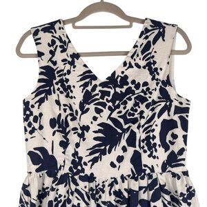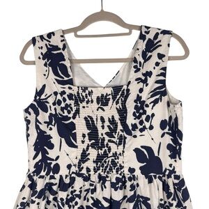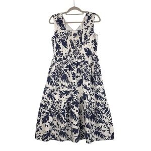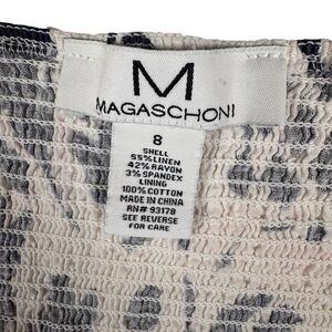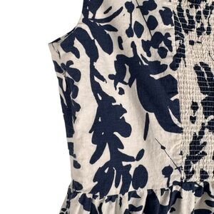 Magaschoni Floral Linen Blend White Navy Blue Sleeveless Midi Dress Size 8