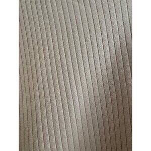 Lightweight ribbed knit with a subtle contrast stripe at the neckline. Neutral tan/beige tone that goes with literally everything.