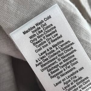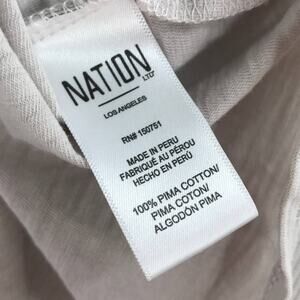 Soft cotton tee in a light sand color. The folded sleeves give this tee a unique look and fit. Scoop neckline with raw edge look. Just a perfect everyday long sleeve. Pima cotton. Machine wash. In preowned condition, has a small stain and a small hole.