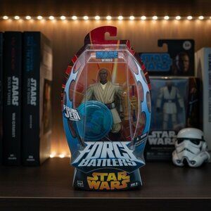 Step into the action-packed galaxy of Star Wars with this Force Battlers Mace Windu action figure. Wielding his iconic purple lightsaber and a missile-firing Jedi gauntlet, this collectible embodies the valor and power of the iconic Jedi Master. Encased in its original packaging, the figure is beautifully designed for both display and imaginative duels. Its intricate detailing and added accessories make it a treasured addition to any collection. Feel the Force as you add this rare piece to your Star Wars journey!