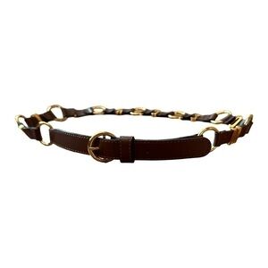 Moschino Logo Brown Leather Gold Hardware Belt