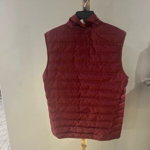 Stylish Columbia vest in deep burgundy. Features quilted design with zip closure and side pockets.