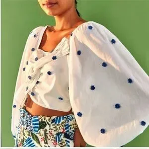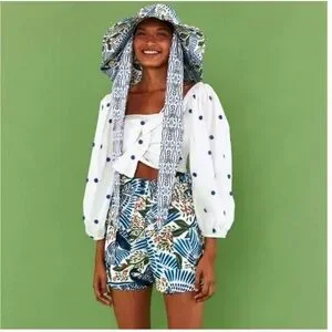 Farm Rio Blue Flowers Long Sleeve Crop Top size Medium