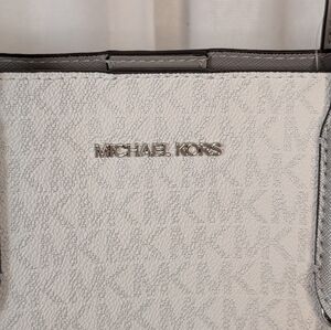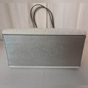 Michael Kors Vincent Large White And Metallic Silver Canvas Tote Coin Pouch NWT