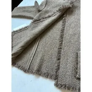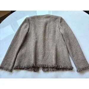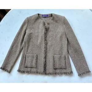 Stunning taupe tweed wool and cashmere blend sweater jacket from Ralph Lauren - beautifully woven in finest and softest of blends with fringed edges and has patch pockets - fabulous piece.