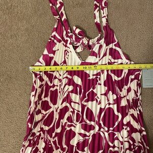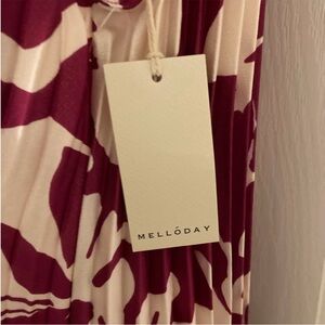 MELLODAY Pleated Floral Satin Magenta and Cream Patterned Maxi Dress Size 1X NWT