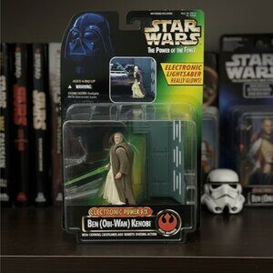 Step into a galaxy far, far away with this Ben (Obi-Wan) Kenobi action figure from 1996's Star Wars "The Power of the Force" collection. Featuring Electronic Power FX technology, his lightsaber truly glows, immersing you in Jedi battles like never before. This figure includes remote dueling action and brilliantly connects with the Power FX Darth Vader figure, allowing fans to reenact epic lightsaber duels! With beautiful carded packaging and incredible details, it’s more than just an action figure—it’s a bridge to iconic Star Wars memories.