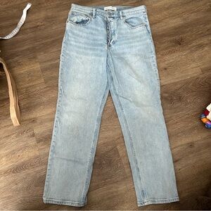Stylish straight leg pants. Light blue denim. Perfect for casual wear.