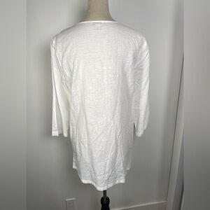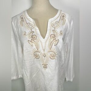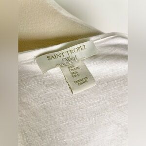 Saint Tropez Linen Top Tunic Size L White 3/4 sleeve Embroidery
