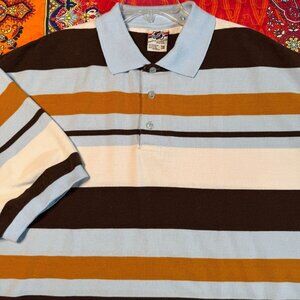 Old Skool Urban Wear Striped Polo Shirt Men’s 3X Blue Brown White Short Sleeve