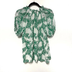 EUC Current Air Abstract Motif Floral Blouse - Ruffle V-Neck Top Shirt