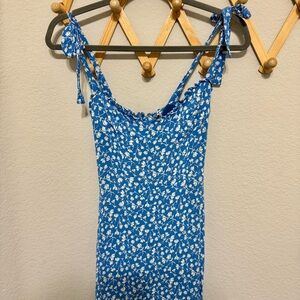 Reformation Blue Floral White Flowers Dainty Viscose Nikita Midi Dress Size 0