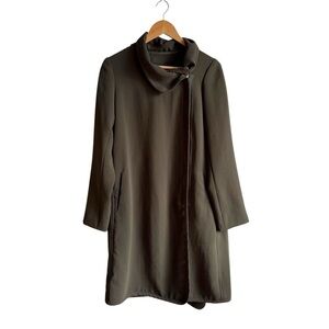 Aritzia Babaton Cormac Coat XS Olive Green Waterfall Drape Asymmetrical Zip