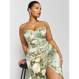 NWT Reformation Marguerite Silk Dress in Tarragon Size 14