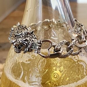 Bold lion tiger designed Unisex punk rock rapper biker link bracelet 7.5". Intricate details. Perfect for statement look.