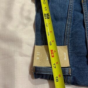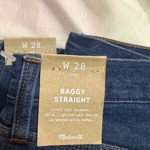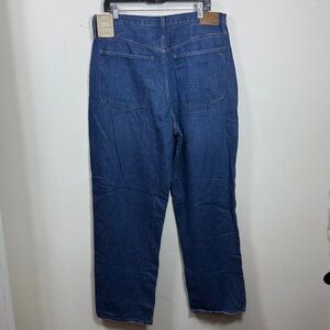 (T4) Madewell loose-fitting straight-leg jeans in a dark indigo wash with a distressed finish, sizes 32(1), 28(3), 26(1), new with tags, see photo for details Upgrade your wardrobe with these classic blue men's jeans. Perfect for any casual occasion.