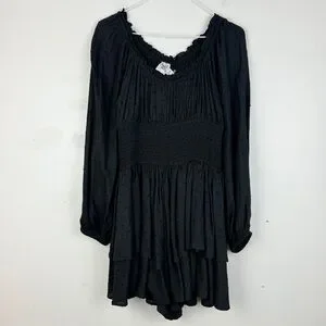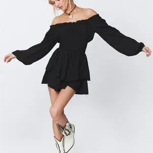 #PrincessPolly #Romper #SwissDot #Smocked #Tiered #NWT #ConcertOutfit #GirlsNight #DateNightOutfit #FallTransition #FeminineStyle #CoquetteStyle #SoftGirl #IndieSleaze #Cottagecore #TikTokStyle #FestivalOutfit #BlackRomper #AUStyle #AustralianBrand