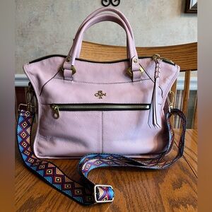 Blush Pink orYANY Women's leather Sarah Handbag Beautiful whipstitch detail EUC