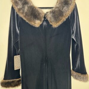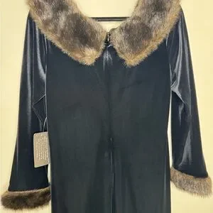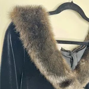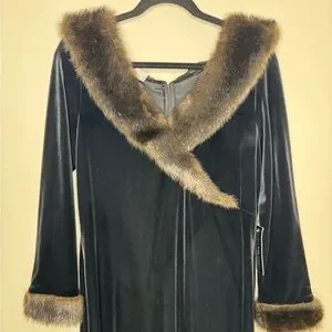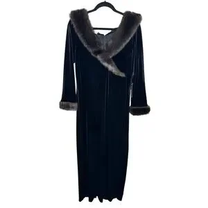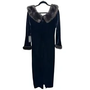 Patra womens L black velvet long sleeve fur cuff maxi dress witchy Gala formal
