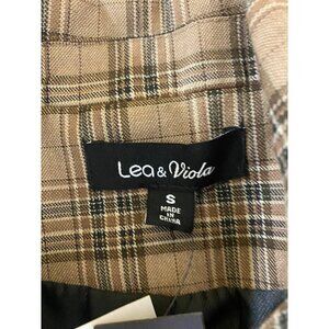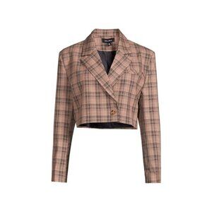 NWT Lea & Viola Women's Brown Plaid Long Sleeve Crop Blazer - Small