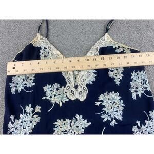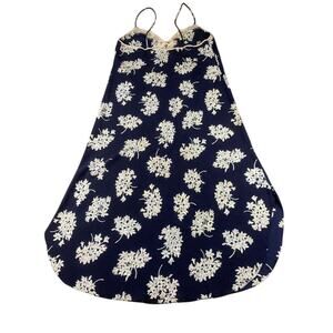 Vintage Christian Dior Lingerie Nightgown Dress Medium Navy Floral Print Lace