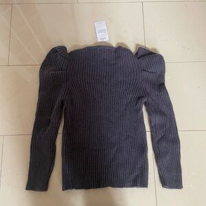 Gray V-Neck Sweater for Women with Puff Sleeve size S