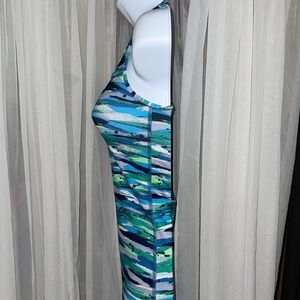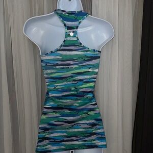 Embrace the waves with this dynamic swim coverup from Lululemon Athletica, featuring a vibrant blend of blue and green hues. The abstract pattern creates a sense of movement, perfect for adding a splash of color to your beachwear. Ideal for lounging by the pool or strolling along the shore.