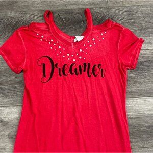 Kandy Kiss Girls Short Sleeve Cold Shoulder T-Shirt Dress-Red-Size Large-NWT