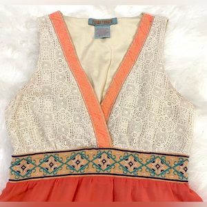 Flying Tomato Womens S Coral Crocheted Lace Chiffon Maxi Dress Boho Coastal