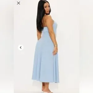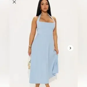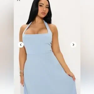 Fashion Nova Light Blue Halter Midi Dress