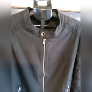 Stay stylish and protected with this classic black lightweight jacket. Perfect for any weather, it combines comfort and durability. This jacket is new with tags.
