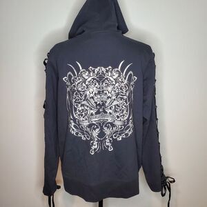 Vintage Harley Davidson Bling and Lace up Sleeve Hoodie Size 1W
