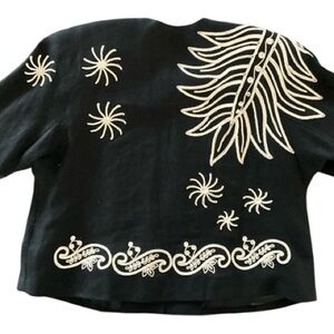 4/$20 Ellen Tracy Petite Embroidered Jacket Black White Open Front - Size 4