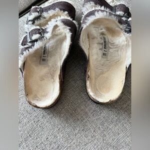 These Birkenstock shearling sandals are in great shape despite the worn shearling. Listing because they still have a great Birkenstock footbed. Perfect for the person who wants cozy but not heat! Cleaned and odorless luxury.