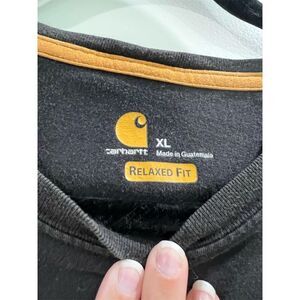 Keywords: Carhartt, men's t-shirt, XL, black, graphic print, relaxed fit, short sleeve, crew neck, casual wear, durable, comfortable, logo accent, cotton, polyester, pre-owned.