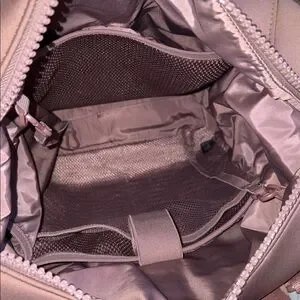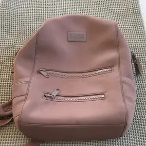 Elegant Dagne Dover backpack in blush. Features dual zippered pockets.