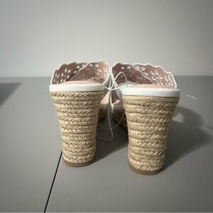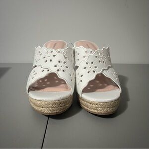 The Draper James Emily wedge sandals in white feature a slip-on design with an open toe and eyelet detailing