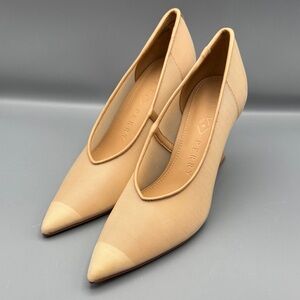 A curved wedge heel adds futuristic flair to an outfit-making mesh pump finished with a stunning pointy toe.
