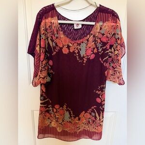 Vintage Free People Sheer Floral Blouse With All Lace Back and Chain - Size Lg
